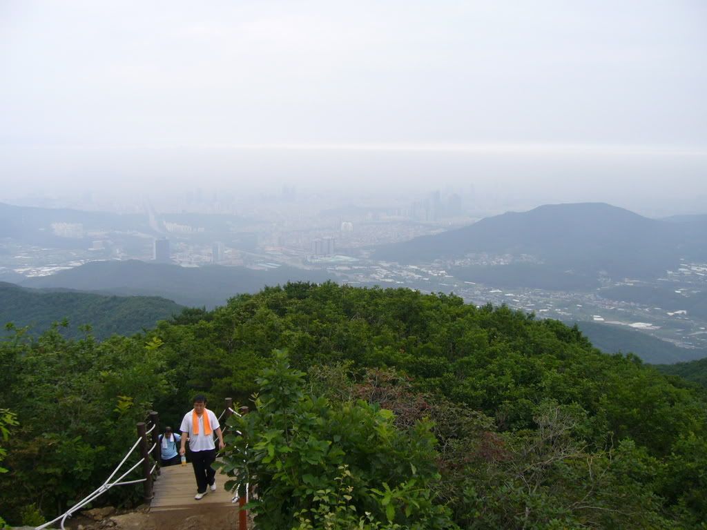 Beginning near Yangjae, it is a steady climb up forested trails and wooden steps (over 1400 of them) to ridge line at about 580 meters